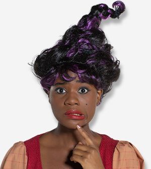 A surprisingly wearable wig, this style falls just past the shoulders and has a thick blunt fringe.